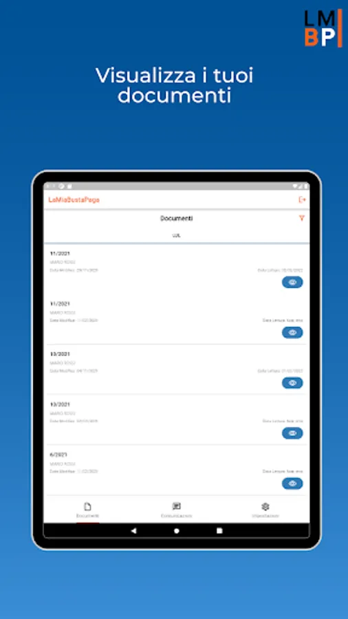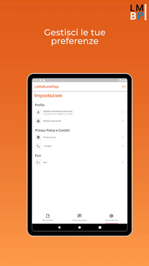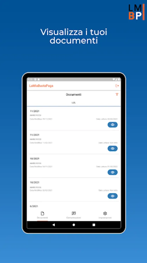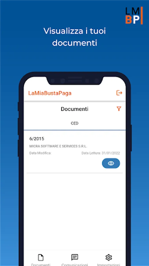 With the LaMiaBustaPaga App you can receive and consult your online slip, logging in with your personal credentials, whenever you want.