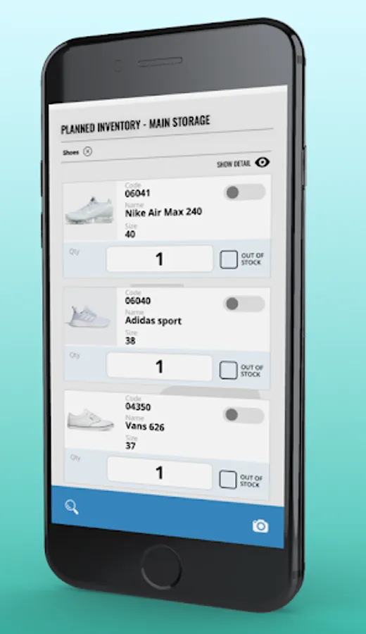 • Search for item by code, description or directly using barcode scanners or the cam of your device.