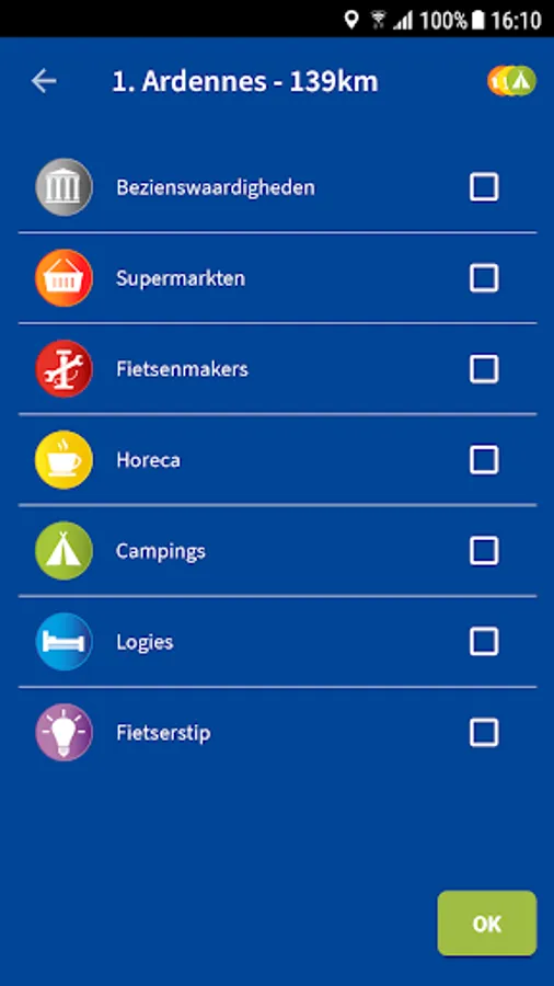 With this App you can download several well-known long-distance routes. Think of the Green Road to the Mediterranean or the Meuse cycle route. The number will increase each year. The App has you at once everything you need for hassle to take your bike route selected; track, maps, altitude profile and all our selected features overnight accommodations, cobblers etc. Error driving is not necessary.
