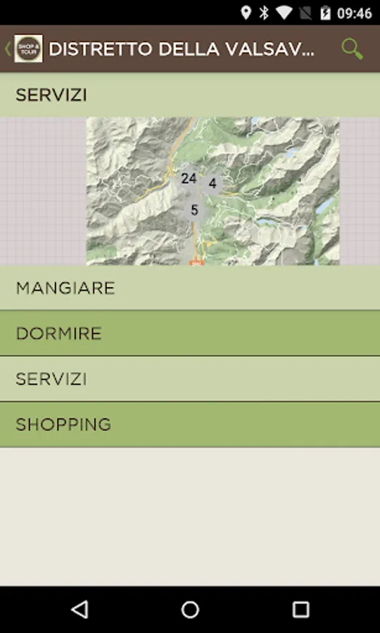The application offers the opportunity to visit the countries of Cedegolo, Cevo, Saviore dell'Adamello and Sellero, providing a list with the major points of interest including artistic and historical sites, natural beauty and trails.