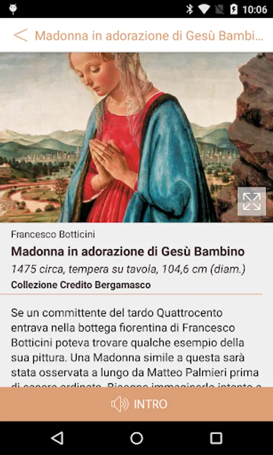 There are absolute masterpieces, only masterpieces related. With this statement we return to Italian history, multiplied in its magnificent, infinite steeples. Even the history of art is a regional history and has adapted to particular events emerged from the sinuous civilizations particular that produced it. For this reason we can say that there is a common thread that can tie together all the masterpieces of the collection Banco Popolare. Each masterpiece is a story in itself. But every one is able to tell the story of an artist, a collector, a territory, a fate the public so worthy of being shared.