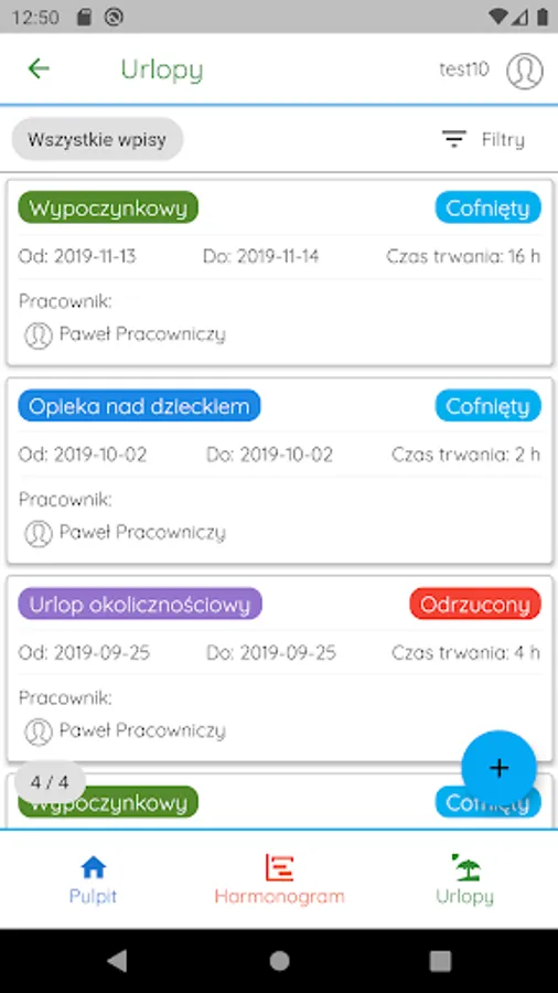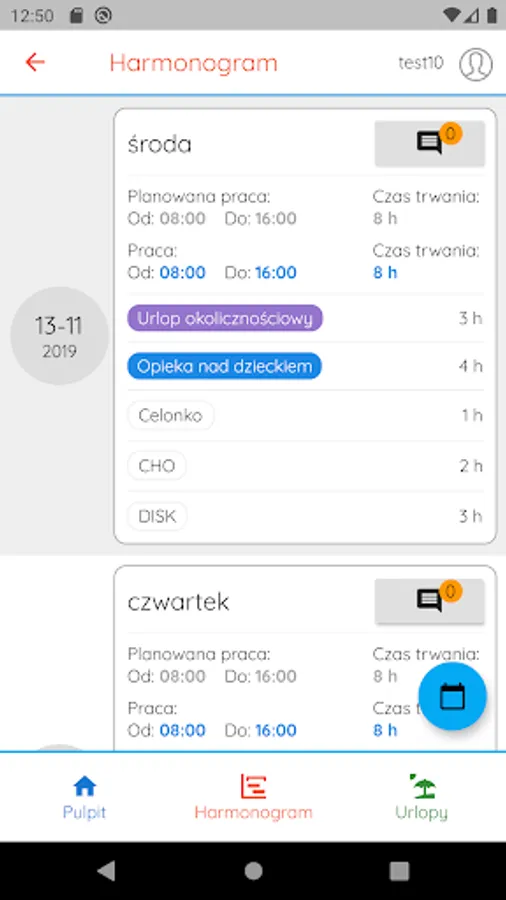 Supports work schedule management and vacation planning.