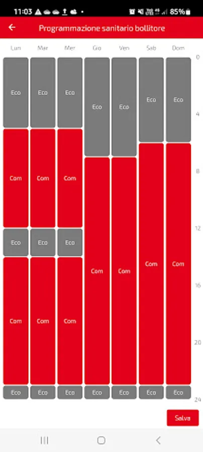 From the time programming page it is possible to set the various time bands for heating and DHW.