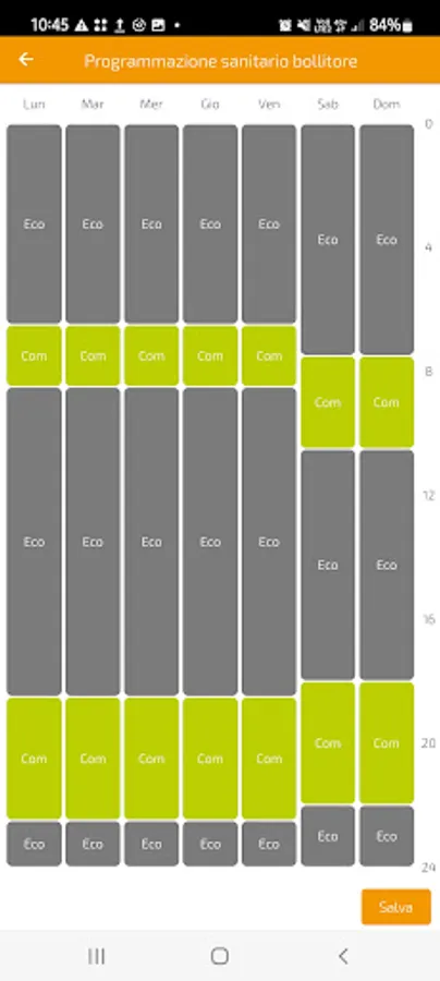 From the time programming page it is possible to set the various time bands for heating and DHW.