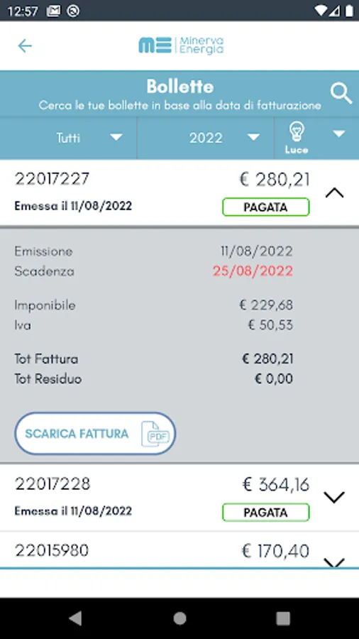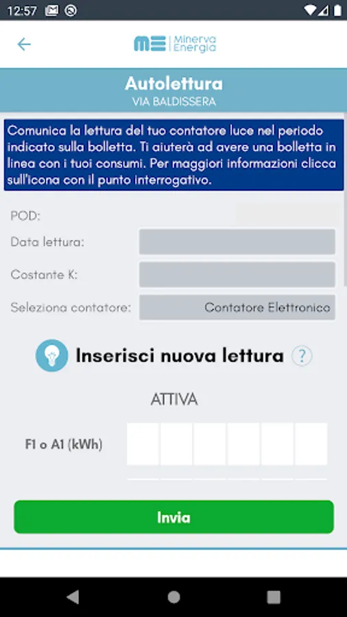Welcome to MINERVA ENERGIA, our APP that allows you to access your reserved area and carry out all the operations relating to your electricity & gas supply contract in a few intuitive steps, wherever and whenever you want!