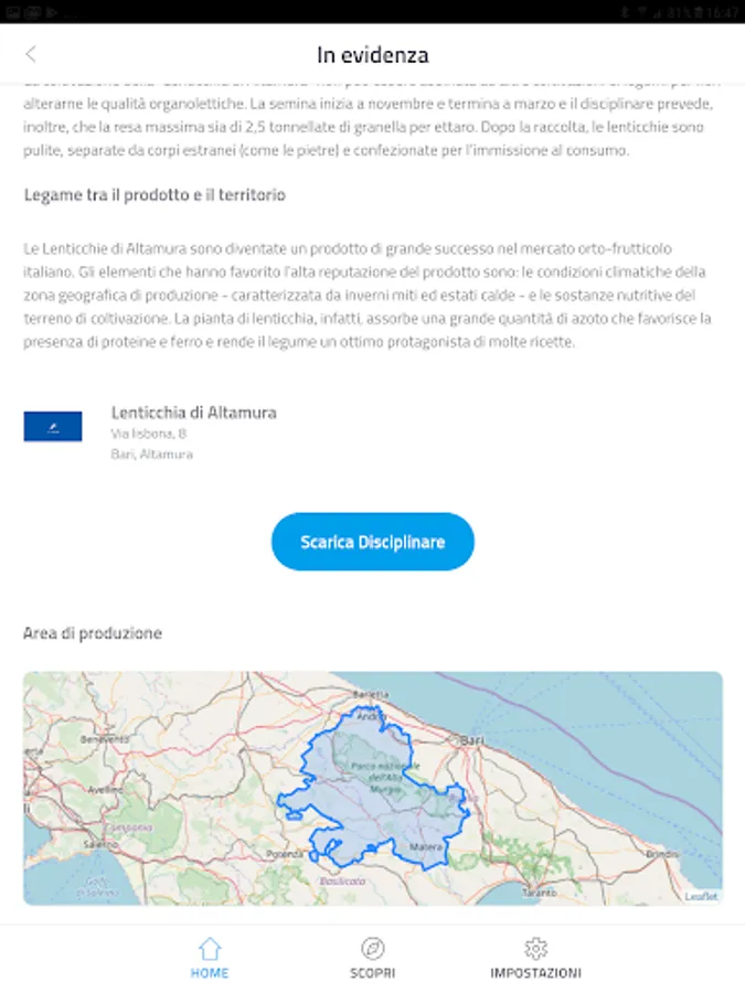 Food for our country is not only a productive but also a cultural heritage: the app allows you to search for events, farmhouses and cultural goods through the map to be explored.