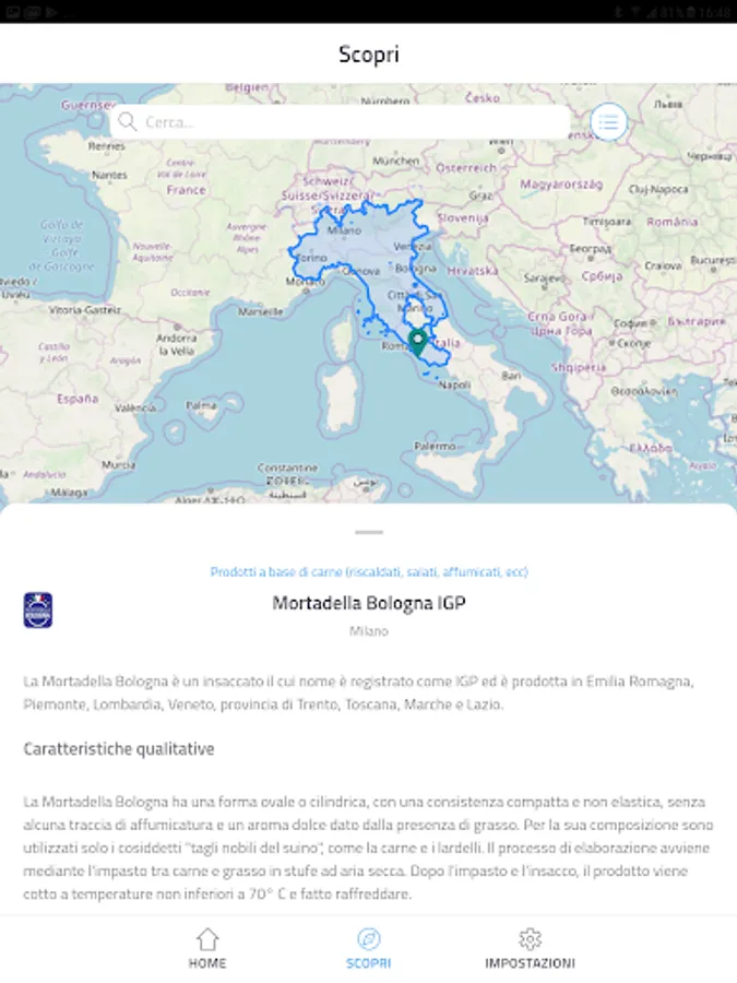 Using the map of the area, it is possible to search for all 823 typical Italian products and to know their characteristics, production methods and the geographical areas where they were born.