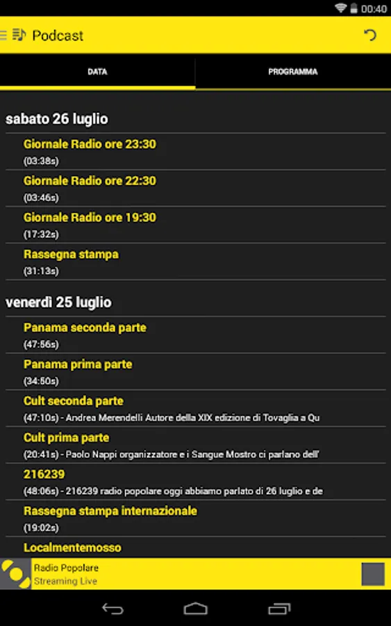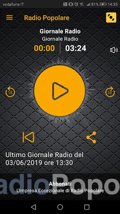 You can listen to Radio Popolare in live streaming via Internet. You can download and listen offline the last newspaper and radio podcasts of various programs.