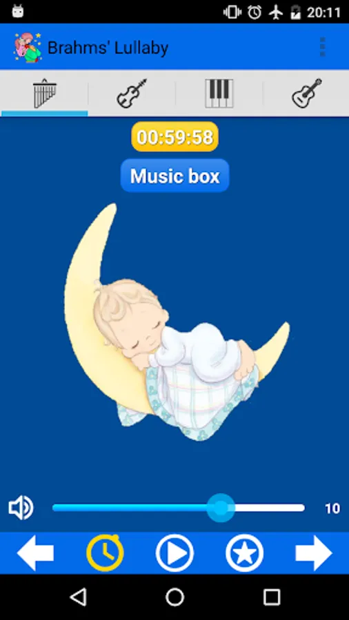 Caution: After you have chosen the favorite lullaby, it is recommended to put the phone in airplane mode close to your sons.