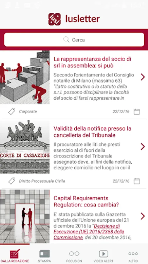 IusLetter, the legal information portal of La Scala Società tra Avvocati, allows you to have more interesting and relevant comments every day on the jurisprudence - even of merit - in addition to the juridical-economic press review of the main newspapers.