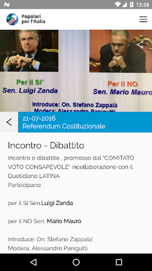 Popular Italy and 'a national political party, member of the National Register of Political Parties recognized in accordance with Decree 149 of 12/28/2013 converted into Law No 13 of 02.21.2014, whose president is Sen. Mario Mauro.