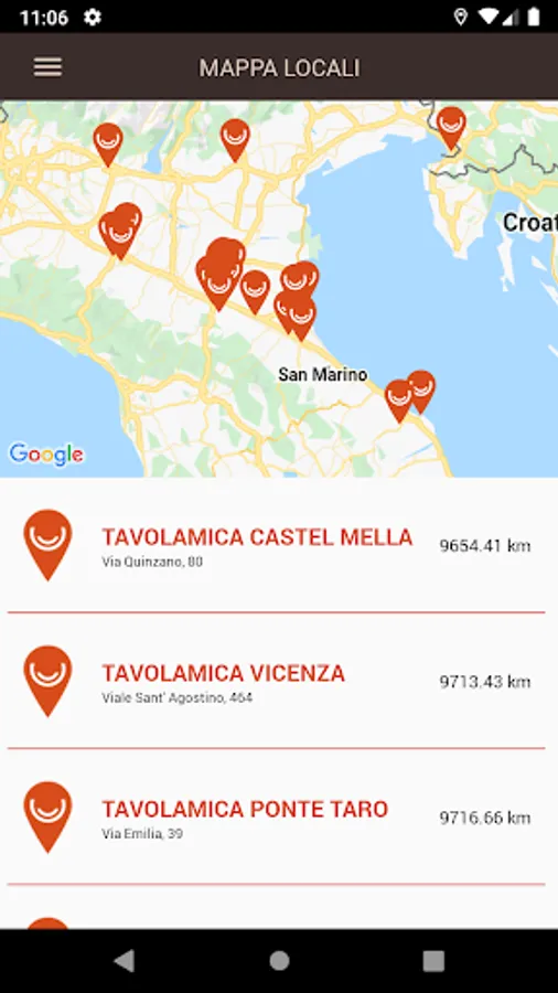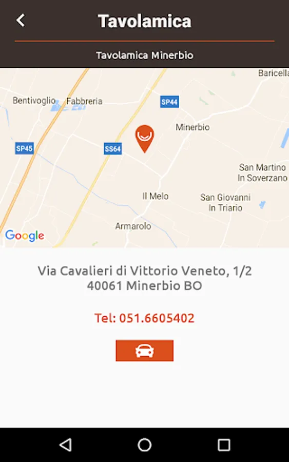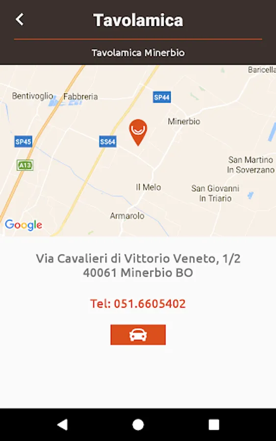 By selecting the Tavolamica restaurant you can access a series of information about the restaurant (address, opening hours, contacts) and you can activate the navigation App (for example Google Maps) to reach us easily.