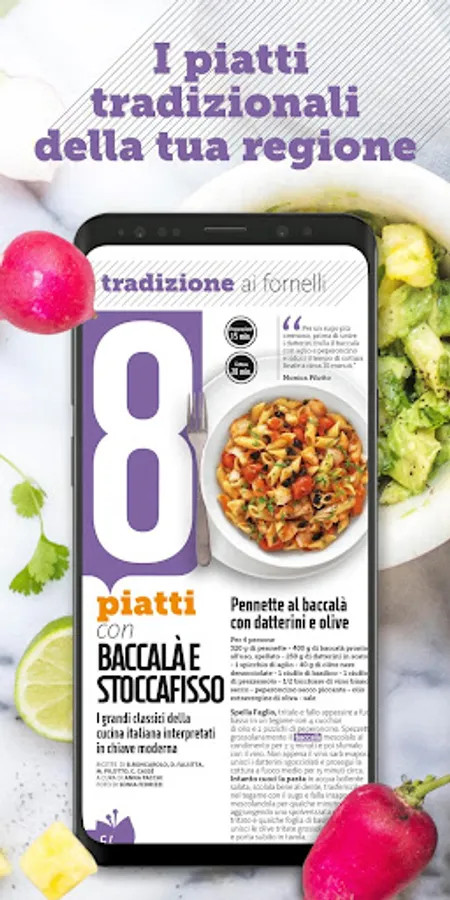 Every month many quick and easy recipes for every day, local, traditional and vegetarian recipes, all explained step by step with beautiful images. In addition, the advice and all the secrets of the bloggers of the Giallozafferano site, insights, curiosities, data sheets to keep and extra contents to be discovered with augmented reality.