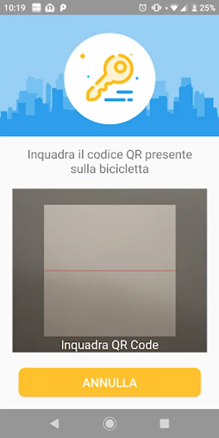 For withdrawal: click the [-] button of the App. Frame the Qrcode placed on the handlebar: after a few moments the lock opens autonomously.