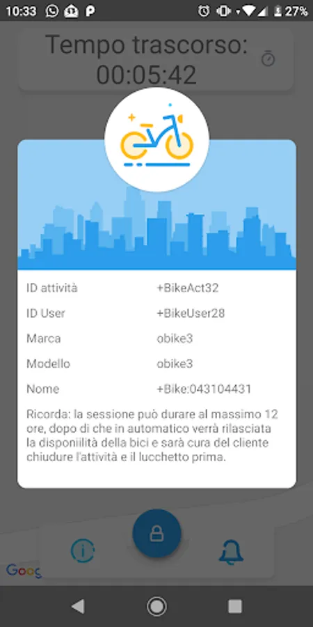 Once the registration is complete, the App shows the main page through which you can access all the features. This page shows your position by indicating the bikes in possession. You can enter an address in the bar at the top to check if there are bikes in that area.