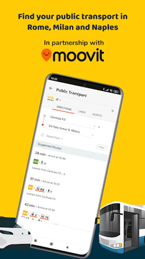 - find the public transport closest to you directly in the app in Milan, Rome and Naples