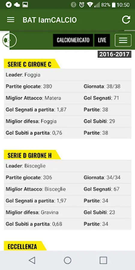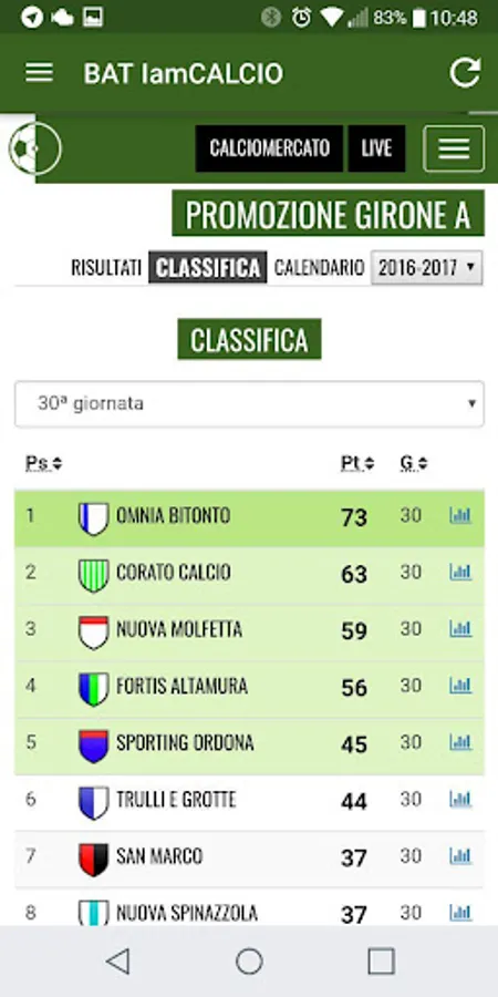 All the calcium of Barletta Andria Trani and province: