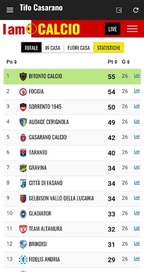 Your football team always with you. The app dedicated to Casarano fans.