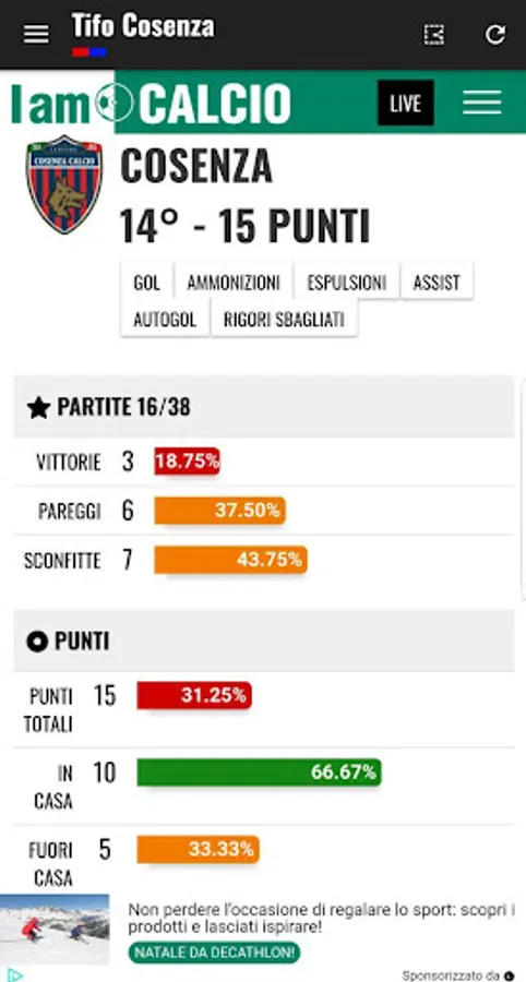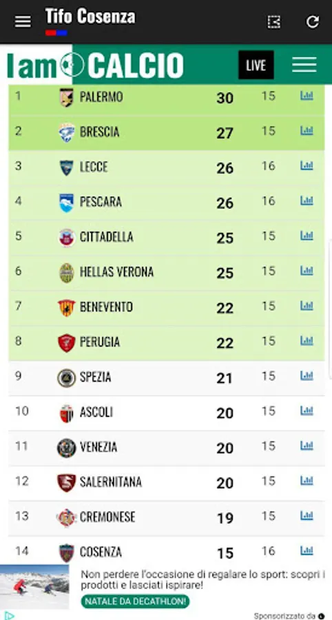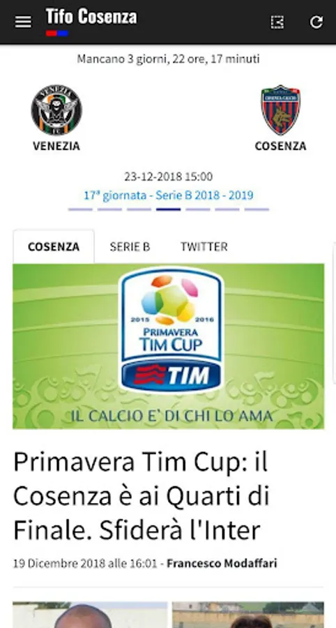 Your football team always with you. The app is dedicated to Cosenza fans, in this way they will have easy access to the results in real time with a detailed program on both past and future matches. A standings that are always updated live, the calendar of the season with the possibility of focusing on a single team and having a personalized roadmap. Particular attention to statistics, top scorers, expulsions, etc.