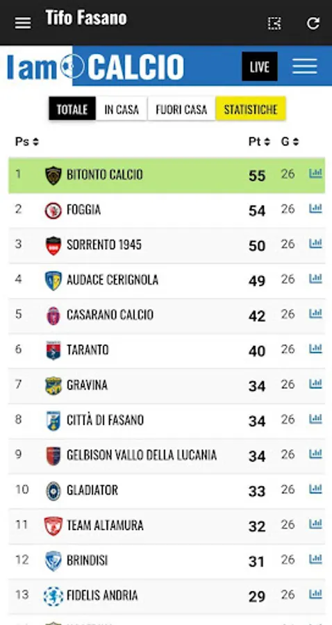 Your football team always with you. The app dedicated to Fasano fans.