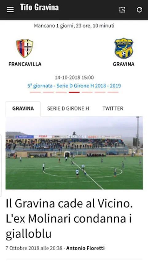 Your football team is always with you. The app dedicated to the Gravina fans.