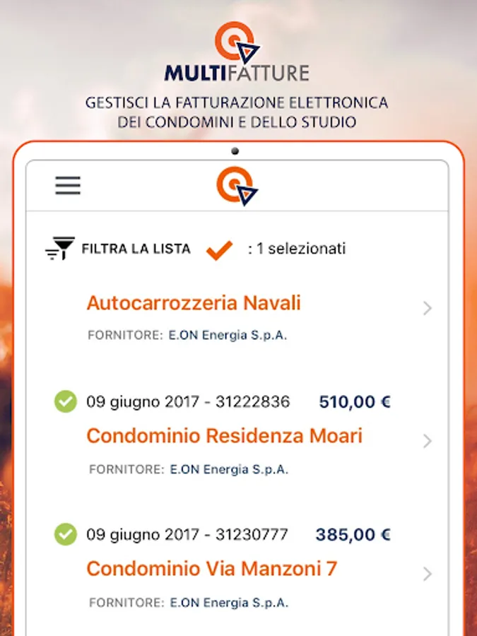 - display of all the electronic invoices of the condominiums and the study;
