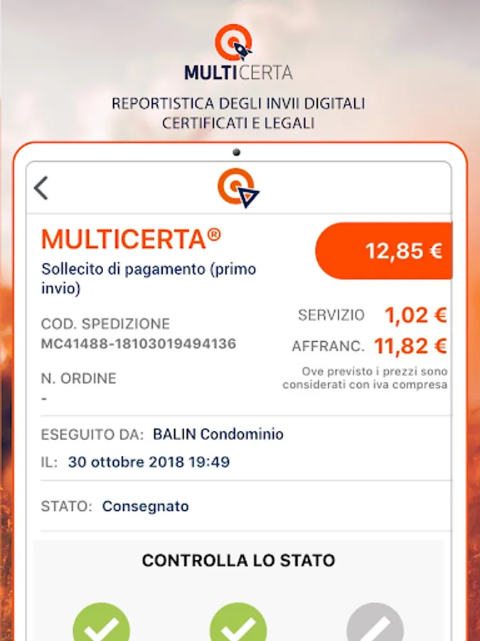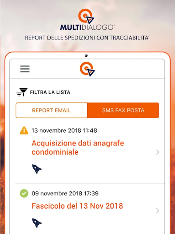 Multidialogo is integrated in all management systems for condominium administrators and allows you to save money and time. The detailed reporting allows you to keep track of every moment of your sending, from preparation to delivery to the occupant. The App also gives you access to the electronic invoices of all the condos you administered and also those of your office.