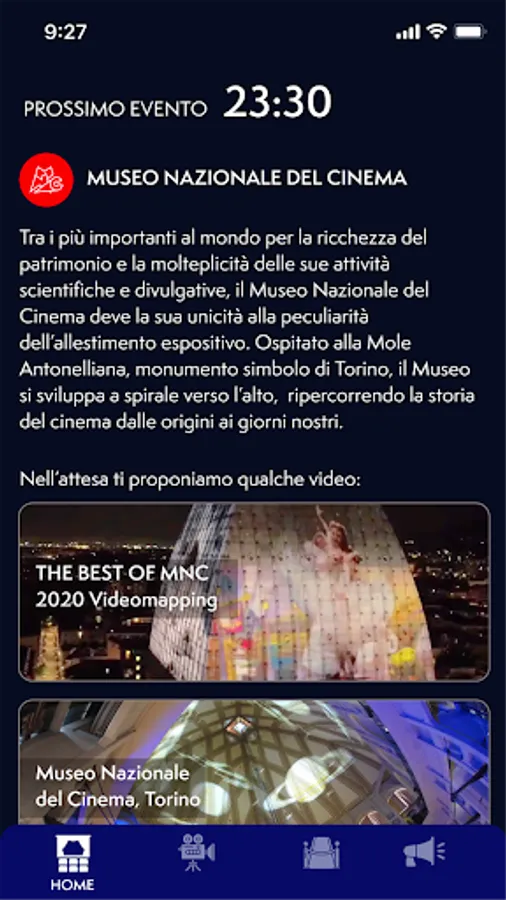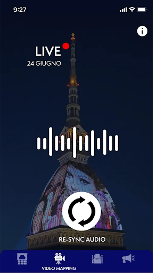 The application allows you to listen to the soundtrack of the shows projected on the Mole Antonelliana in Turin in sync, on the occasion of the "Video Mapping Experience" for the 20 years of the National Cinema Museum.