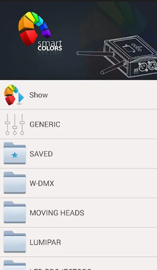 SmartColors allows to control ProLights fixtures directly from your tablet or smartphone, in the same way as through DMX 512 Protocol.