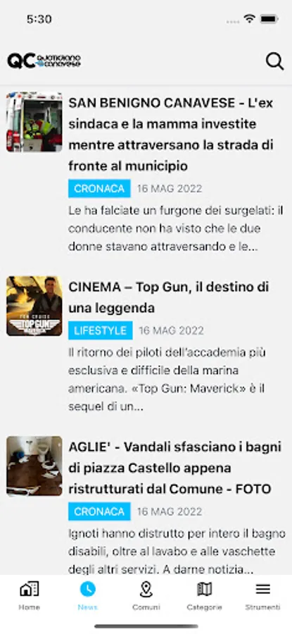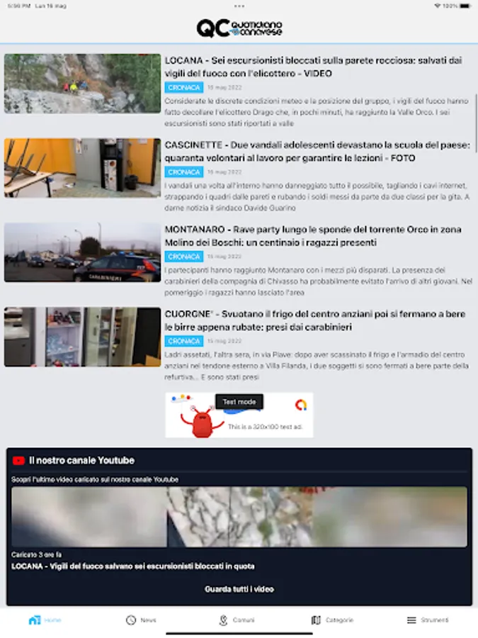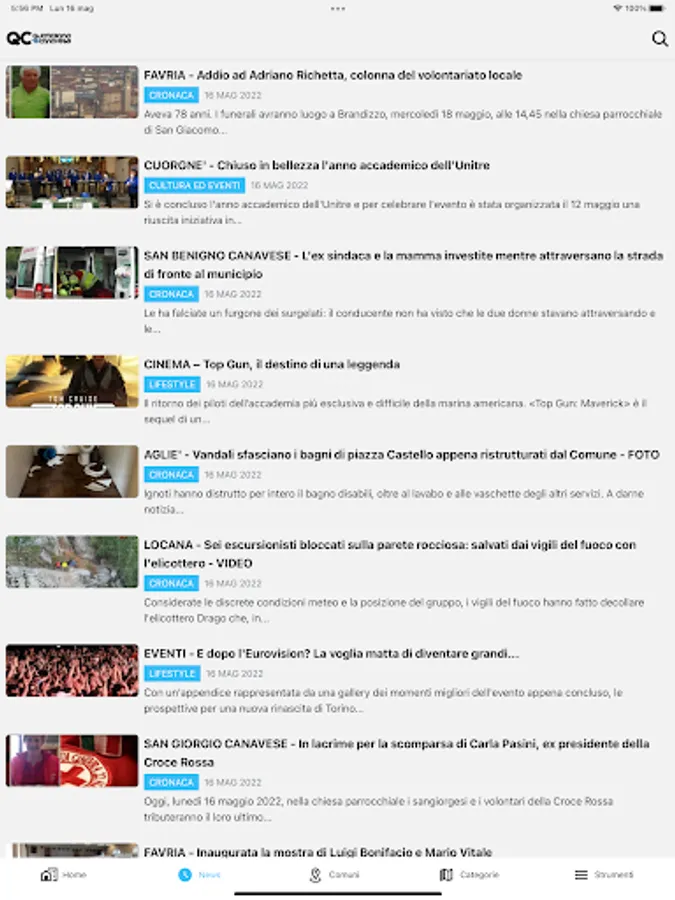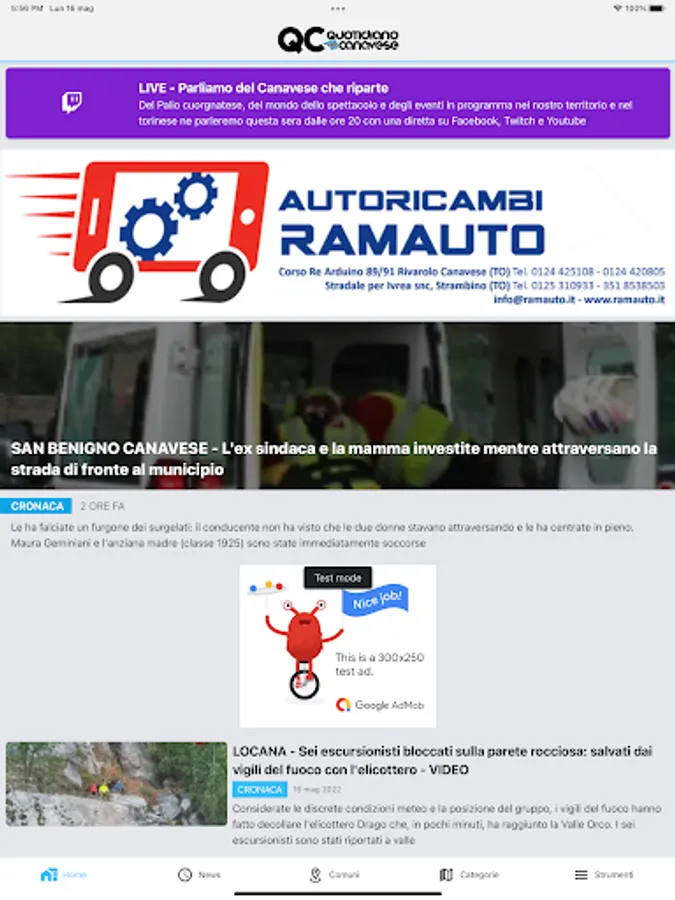In the first screen you will find the Homepage with the best articles selected by our editorial team and the interactive badges when there will be news in evidence and live on our Youtube, Facebook and Twitch channels.
