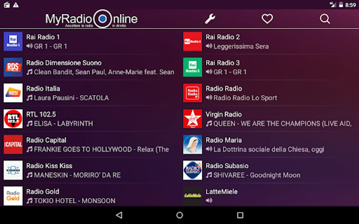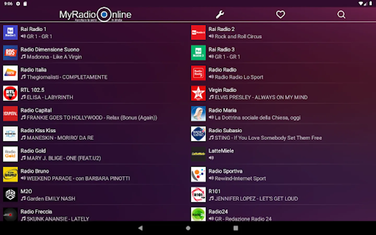The Android application created for our site which bears the name "myradioonline.it" and which brings together Italian radio stations, has for the moment functions similar to those of the web interface. Currently you can listen to more than 100 Italian radio stations live.