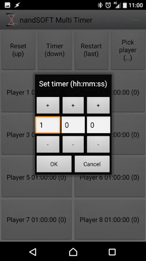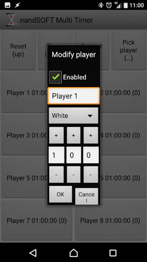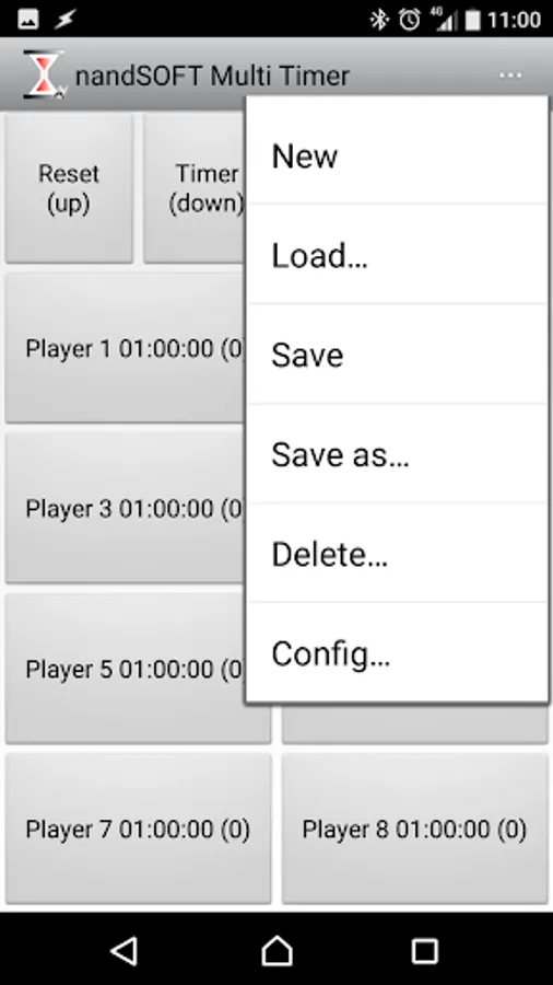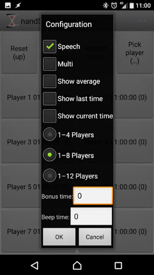 Select menu -> Config to add speech, set multiple timers, show averages, last, and current times, set the layout to 4, 8 or 12 buttons.