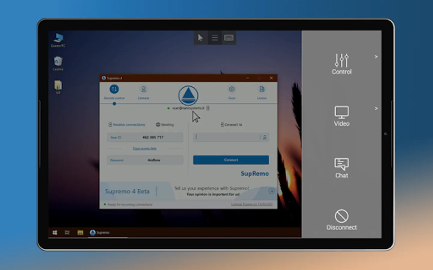 Supremo Remote Desktop is a powerful, easy and complete solution for remote desktop control and support. It allows to access a remote PC or join a Meeting in just a few seconds. Supremo is also compatible with USilio, the IT Management Console.