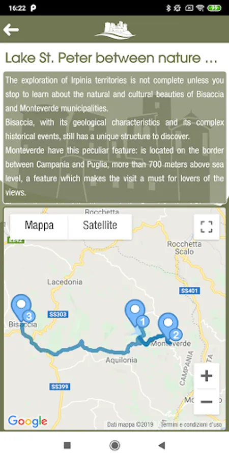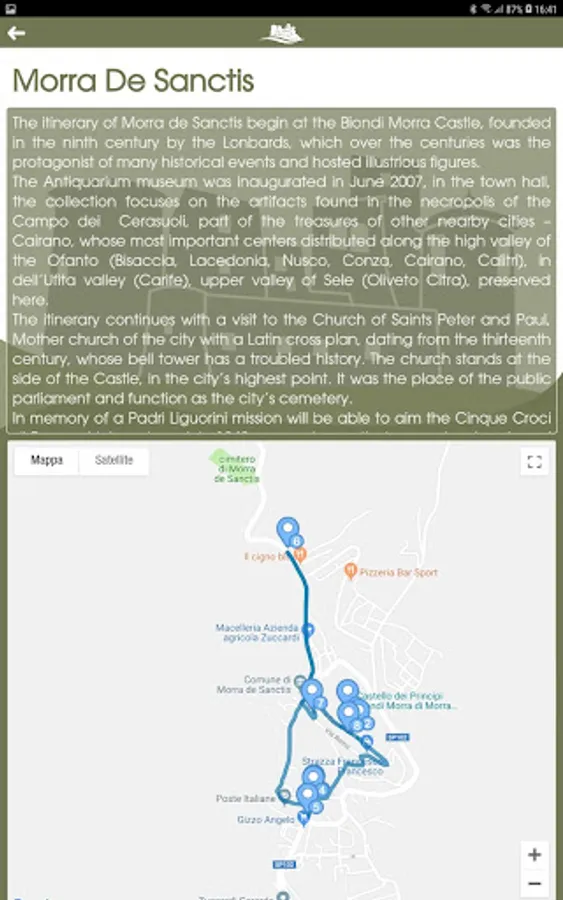 With the History of castles five municipalities in Irpinia, Bisaccia, Monteverde, Morra De Sanctis, Sant’Angelo dei Lombardi and Torella dei Lombardi unite in a network that promotes the goods and traditions present in the territory through new technologies. Thanks to the App the user can know all the points of interest of the single Municipalities, know how to reach them, learn about the history, the food and wine and landscape richness.