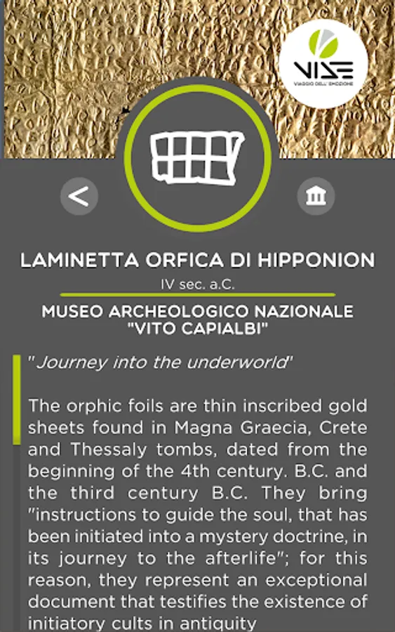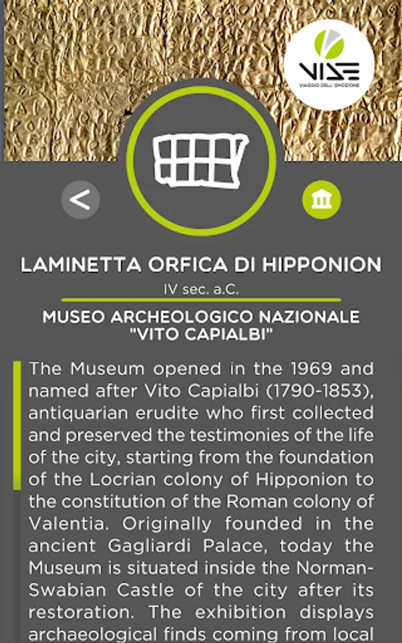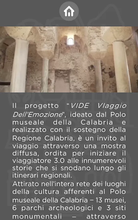 “VIDE VIaggio Dell'Emozione” project, designed by the Calabria museum centre and achieved thanks to the support of the Calabria Region, is an invitation to travel through a widespread exhibition, designed to introduce the 3.0 traveller to the countless stories that unfold along regional itineraries.