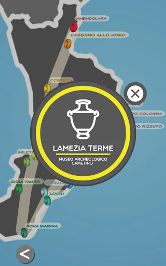 The exhibition has its irradiator centre in Cosenza, at Arnone Palace, where an screening room developed with modern computerized animation graphic technology will allow visitors to take a virtual journey throughout all the other locations involved. Within the other museums and cultural places, thanks to a dedicated app, they will then be able to view not only the finds included within the current path, but they will have the possibility to undertake virtually further and new paths traced according to their own interests and sensitivity.