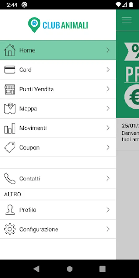 Each time you use your Club Animali App, you will receive a top-up in euros equal to a percentage of the amount spent, established by each store, to be used as a discount on your next purchase and always in that store.