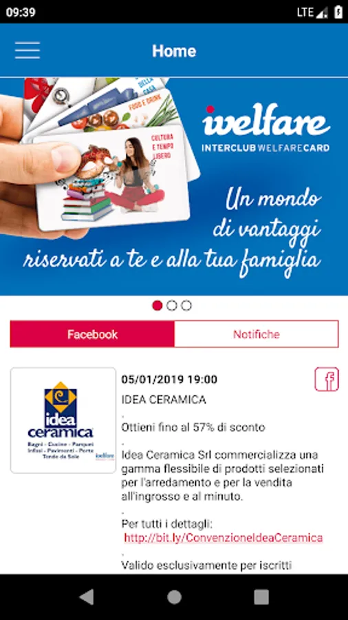The Interclub Welfare Card App is a Virtual Card with which you can take advantage of reserved discounts, but it is also an interactive guide where you can consult offers on current events (concerts, exhibitions, museums, sports and much more) and all agreements with shops, clinics, sports centers, restaurants and markets.