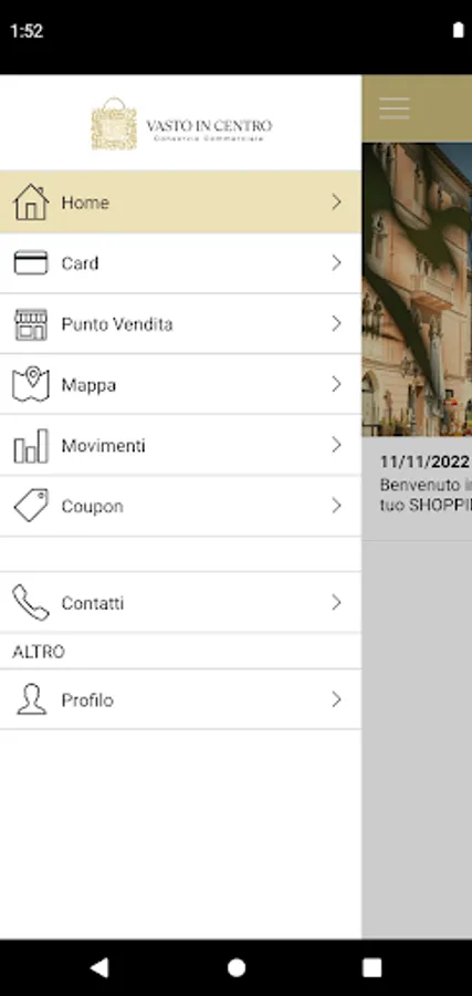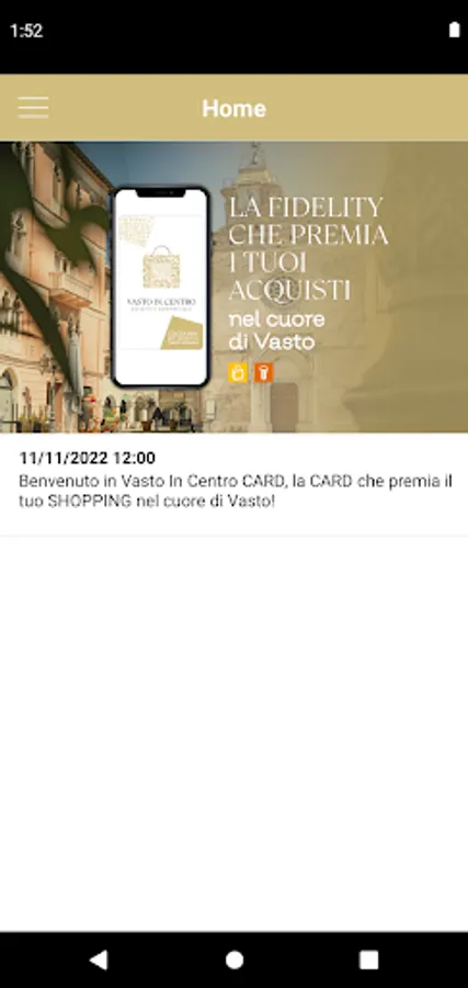 On this App, you will find the virtual CARD that rewards your purchases in the Vasto In Centro circuit and much more.