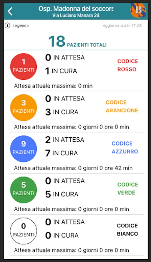 Thanks to "ER" is possible to see in real time the status of crowding and waiting time required for each level of urgency.