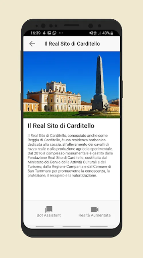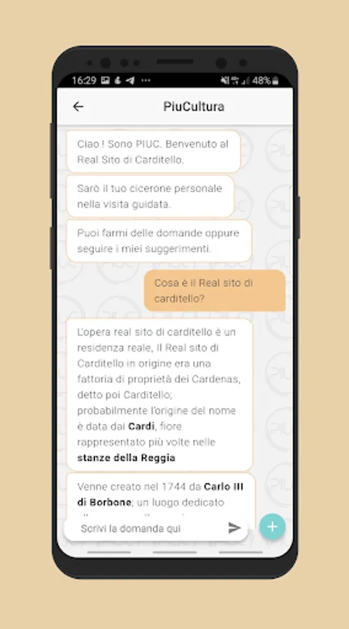 PIUC will be your personal guide who will accompany you during a visit to the Real Site of Carditello. With PIUC you will have access to all the contents on the works of art of the Reggia.