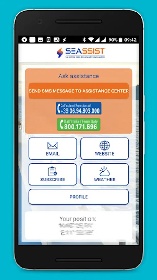 NOTE: the cost of the message sent is charged to the customer on the basis of the contract signed with his telephone operator. Please note that the application is only supportive, the phone at sea does not always work properly and depends on telephone coverage.