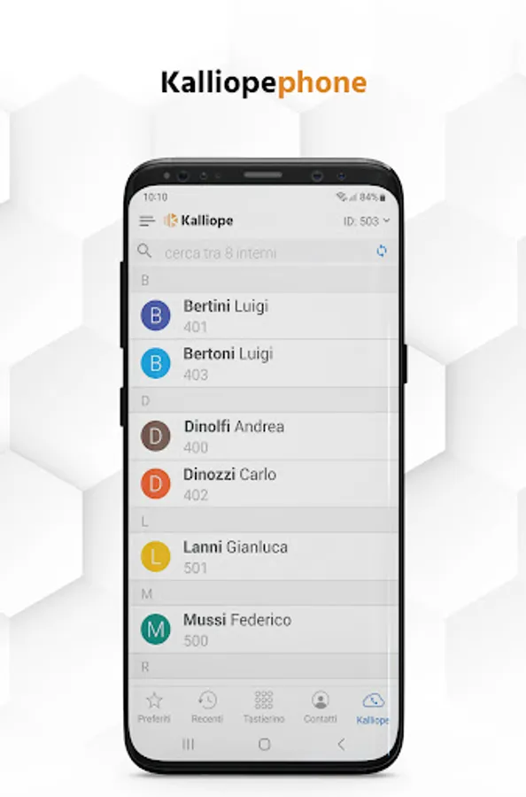 Synchronize your contacts with Kalliope Phone and quickly access all your phone numbers, including your colleagues' internal numbers, in a simple and intuitive way.