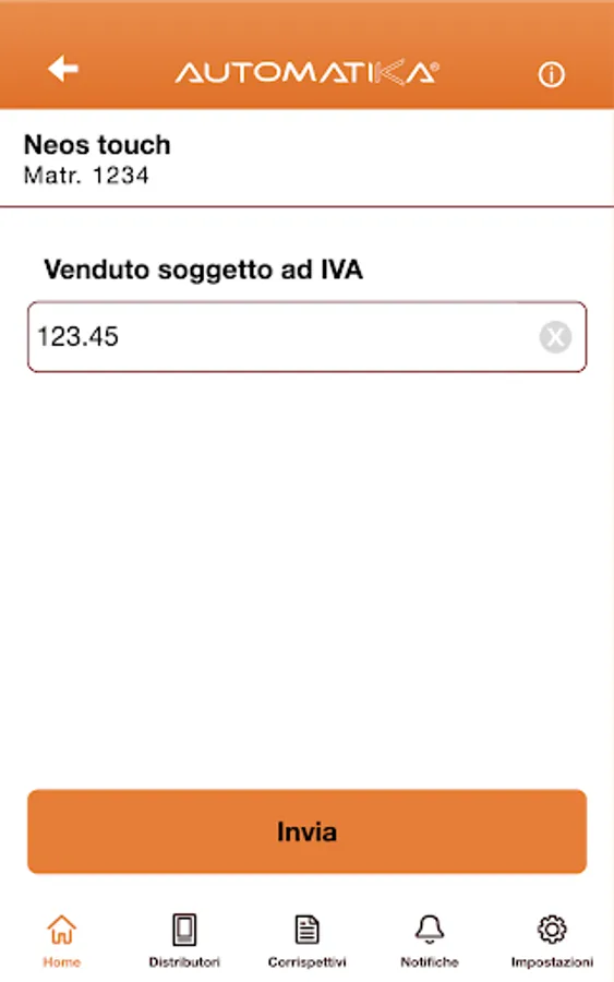 With the app you can easily Automatika in an electronically send the amount of your vending machines, fulfilling the requirements dictated by the Inland Revenue.