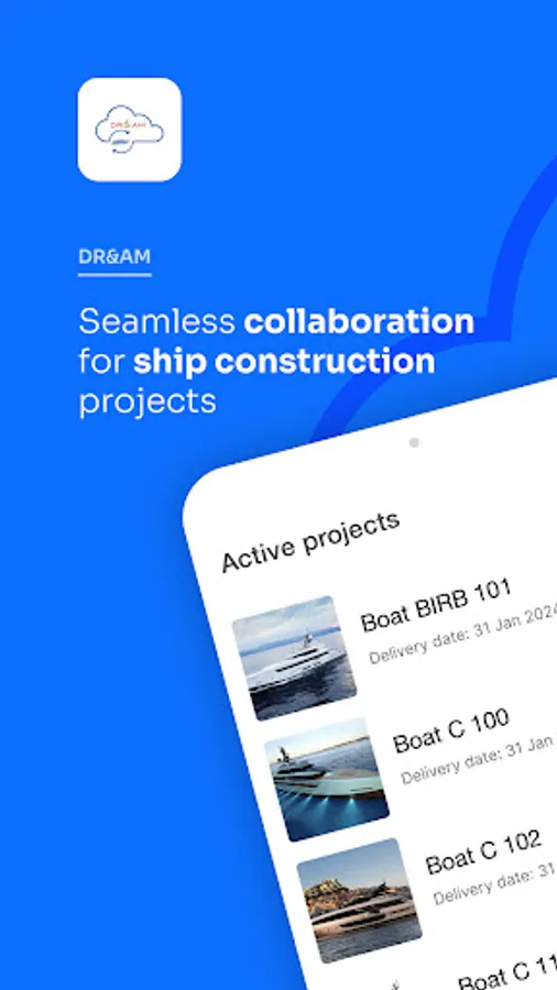 DR&AM is a versatile mobile application specifically designed for seamless collaboration and information sharing within a shipyard environment.