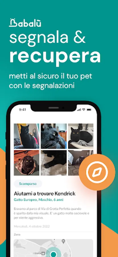 On Babalù you can help other users find their lost pets or ask for help from the entire community if you lose yours. Create a report, publish it on the home of the social network and also share it on the web.