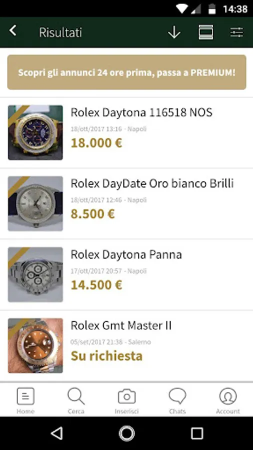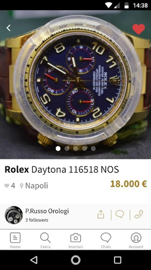 Getwatch, again, with a simple touch on your smartphone, will allow you to take pictures at the clock you've decided to launch and continue your listing by adding, optionally, also other more specific features to make it "sought after" your watch . You'll also your own personal area where you can manage all of your activities on the platform: account settings, personal data, control inserzionati ads or favorite ones, and verification of all followers.