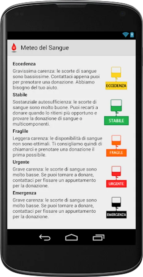 The "Weather blood" is a new service activated by the Region of Tuscany CRS - Regional Blood Centre. This system allows you to self-evaluate, by the donor, the demand for blood in a particular group and decide, therefore, to go to donate independently in case of shortage or wait when stocks are stable in blood bank.