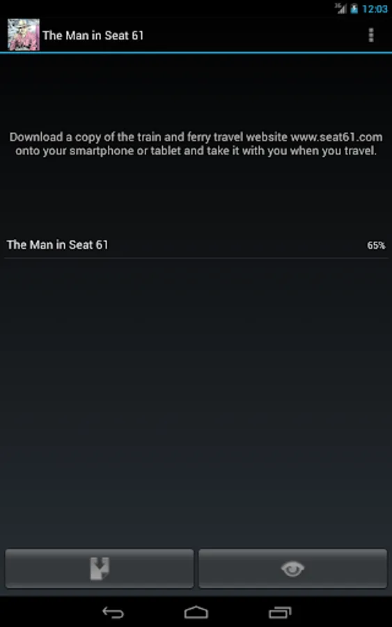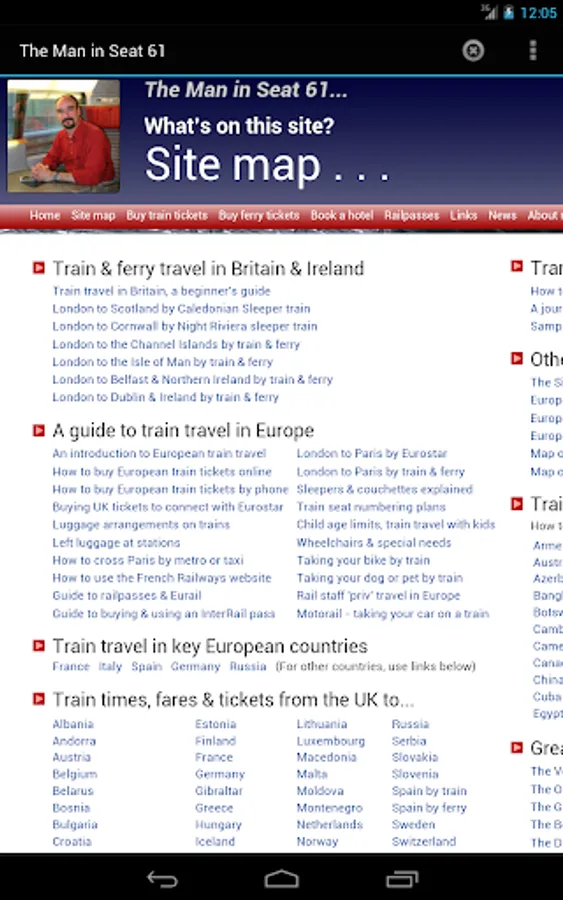 Download a copy of the train & ferry travel website www.seat61.com onto your smartphone or tablet and take it with you when you travel. You can browse all the pages of the site off-line without incurring expensive data roaming charges. To refresh your off-line files with a current version of seat61, simply download again when you're next on WiFi.