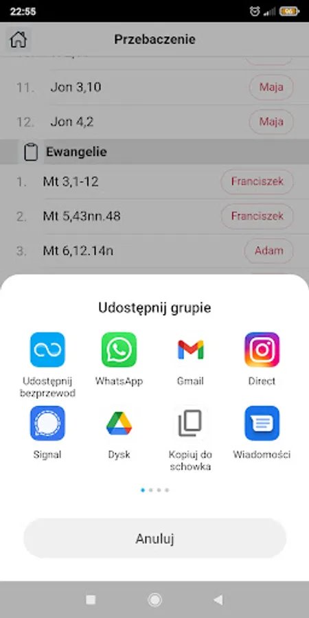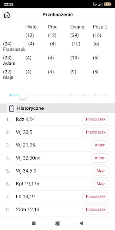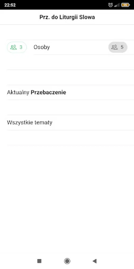 The app includes a list of topics for the precatechumentate and other topics from the biblical dictionary, i.e .: